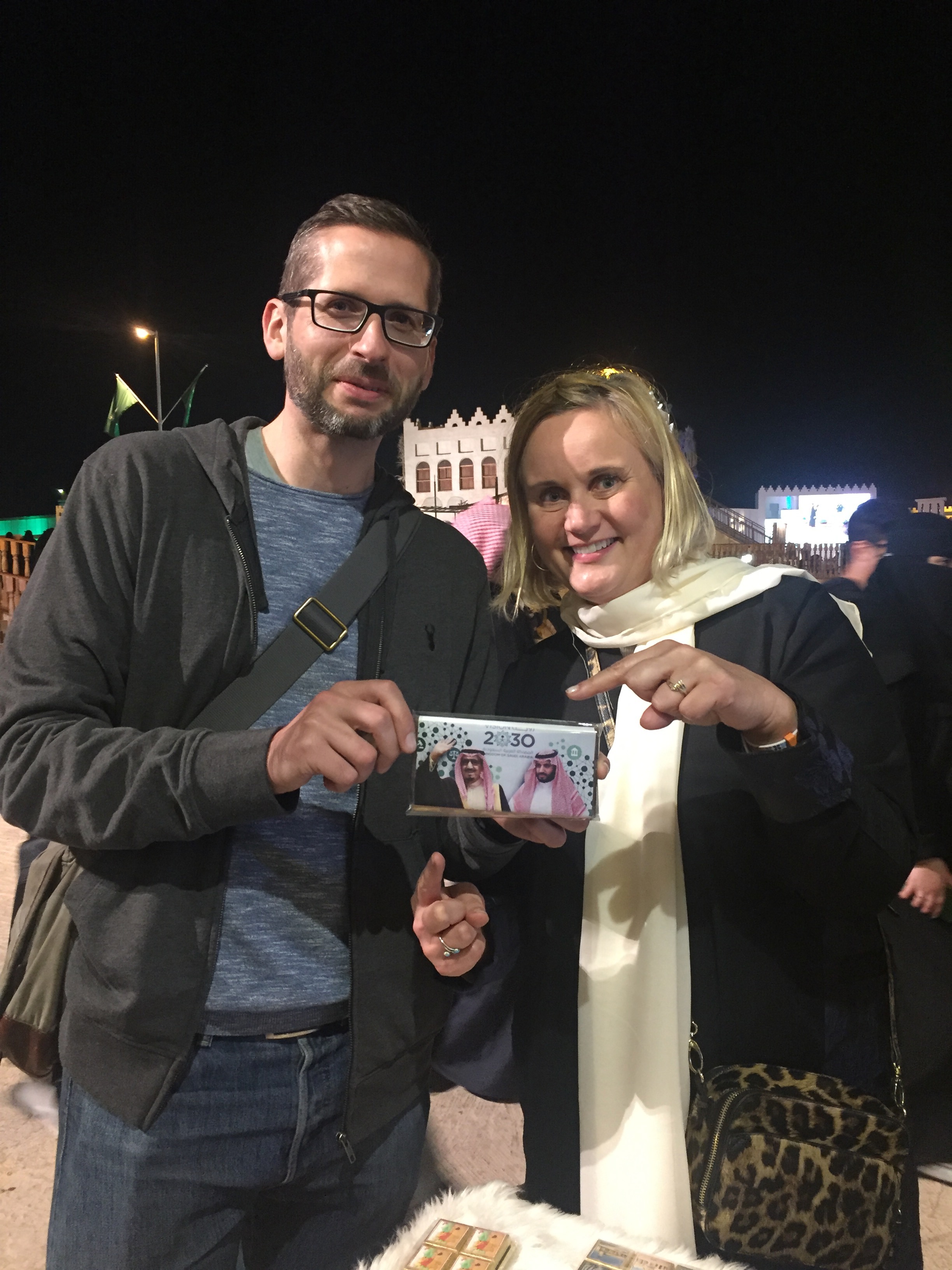 We also purchased some chocolate from a lady called Sophia who had every flavour imaginable – but we opted for a bar of plain chocolate wrapped with a photo of King Salman and Crown Prince Mohammad Bin Salman.