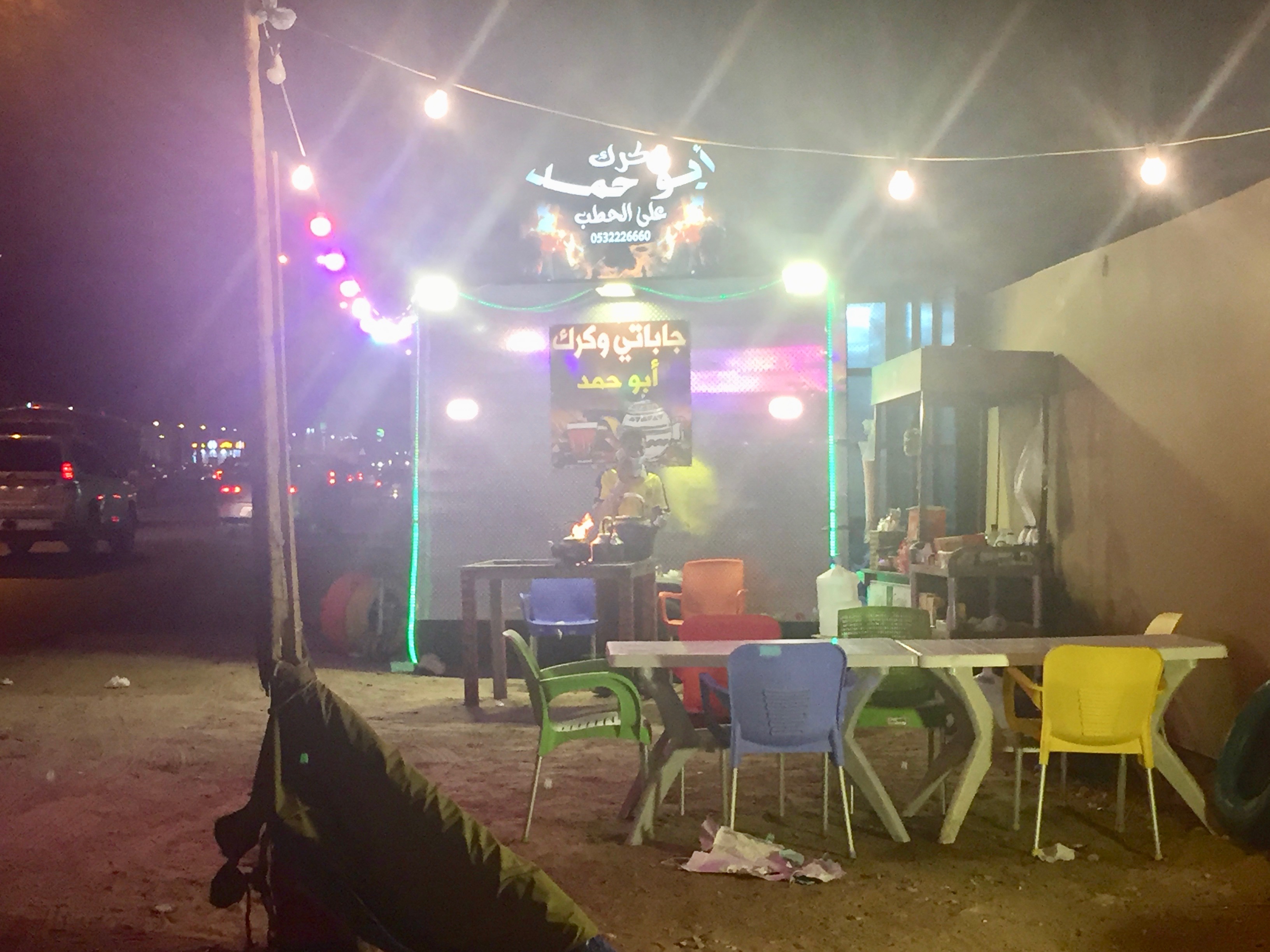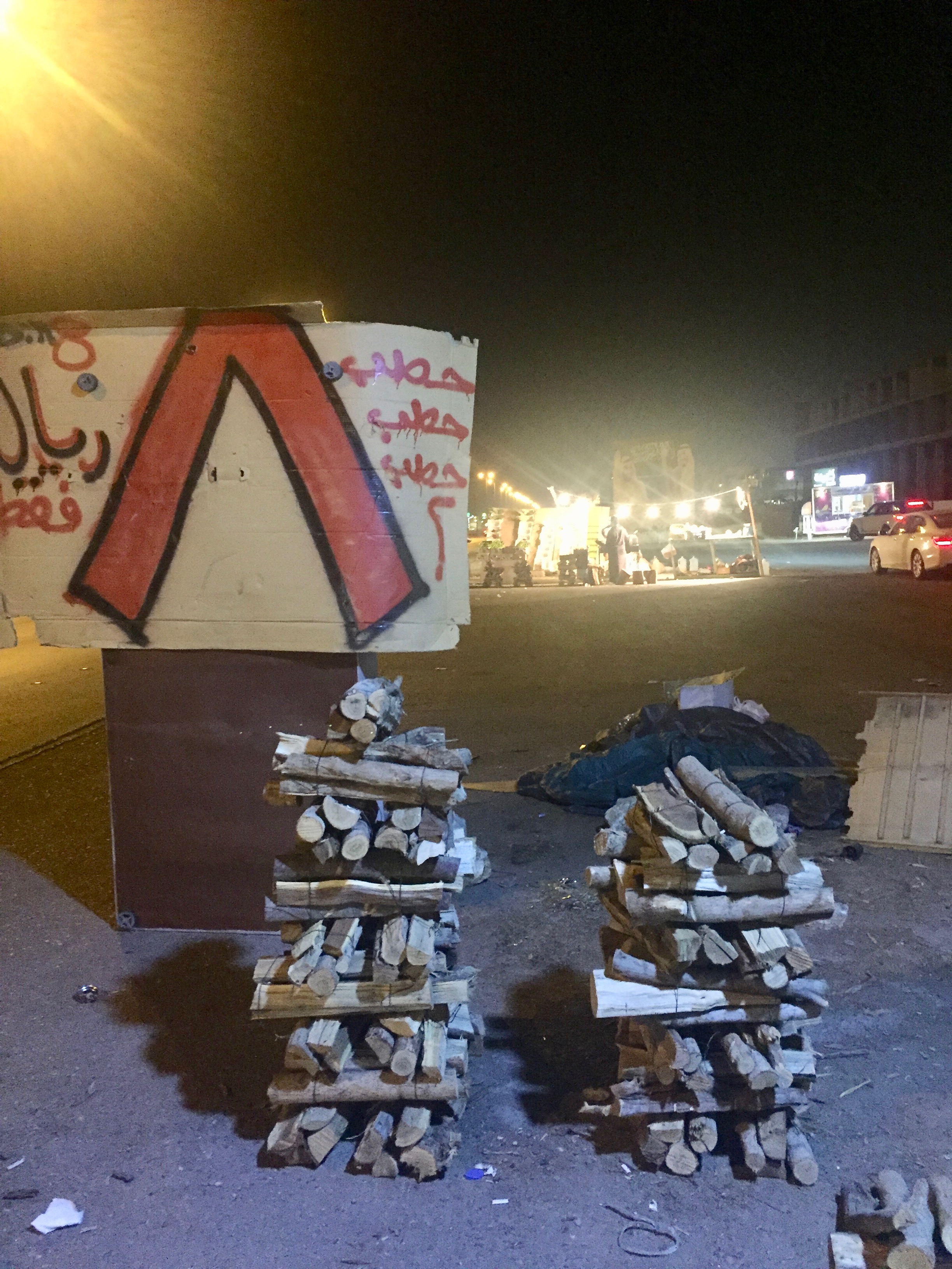 The other evening we went for a walk in our local area. The north west part of Riyadh we are living in was desert two years ago and close by is a a main highway leading out to the desert. The Saudis have a passion for camping and picnicking so to facilitate that are a cluster of shops and stalls selling all things camping related – a good place to stop off for anything you might have forgotten before you hit the desert for real. Most of the stall sellers are only there once it gets dark (about 5.30pm at the moment).